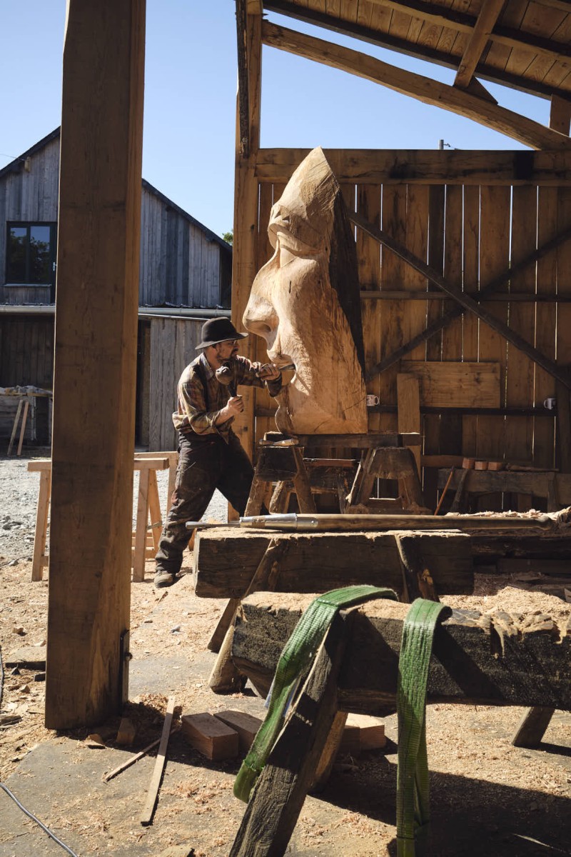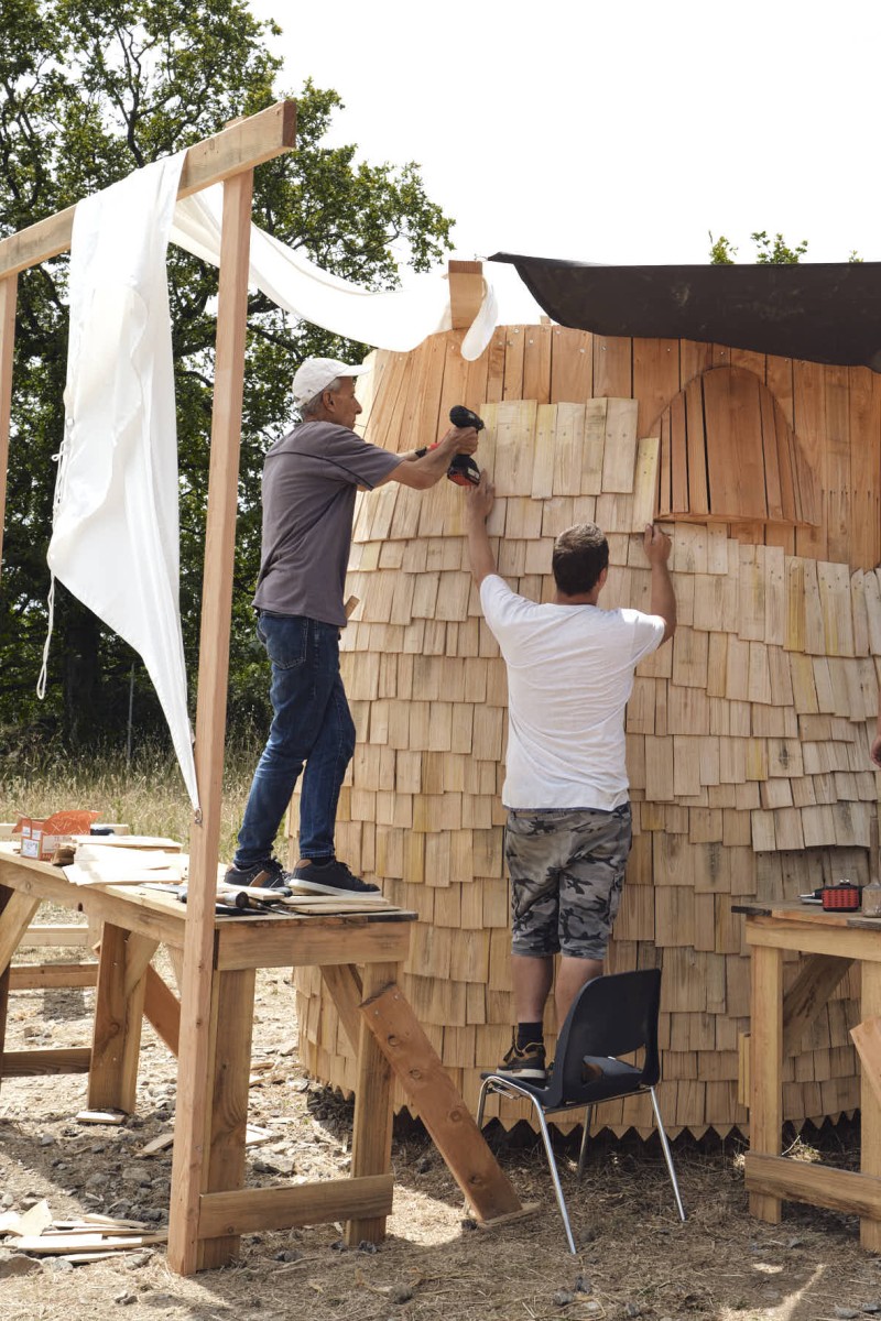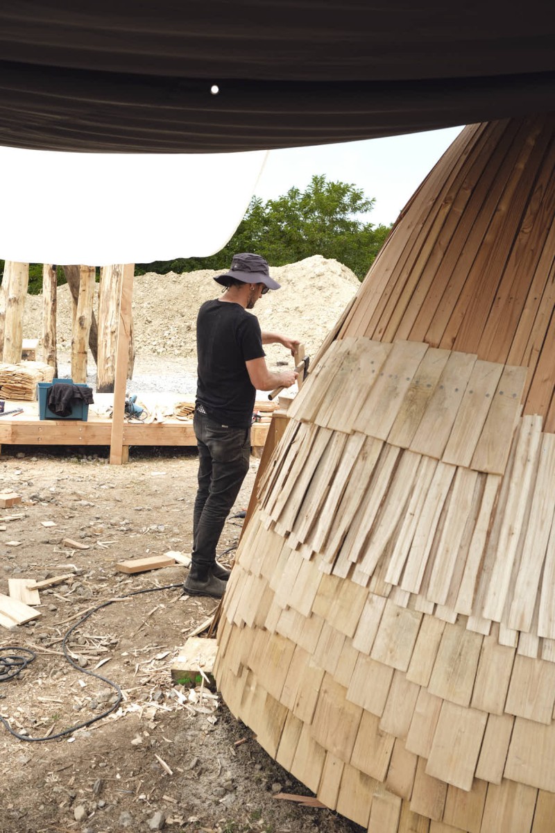 Le «Berger des Coux» est le premier géant de la Vallée de l’Yon, il incarne un territoire, sa biodiversité et son patrimoine. Conçu avec des matériaux locaux et des savoir-faire traditionnels, il devient un marqueur vivant du paysage, un lieu de réflexion et de contemplation de notre relation aux vivants. Ce géant, construit en collaboration avec des artisans locaux et la communauté sur la friche d’une ancienne cimenterie, s’élève comme un totem protecteur, un point de rencontre et de rassemblement pour les habitants. Il symbolise la résilience de la nature et du patrimoine local, tout en offrant un espace de transmission et de partage entre générations. Intégré dans un projet de valorisation durable, il invite à la création de nouveaux récits communautaires, nourrissant l’imaginaire collectif.