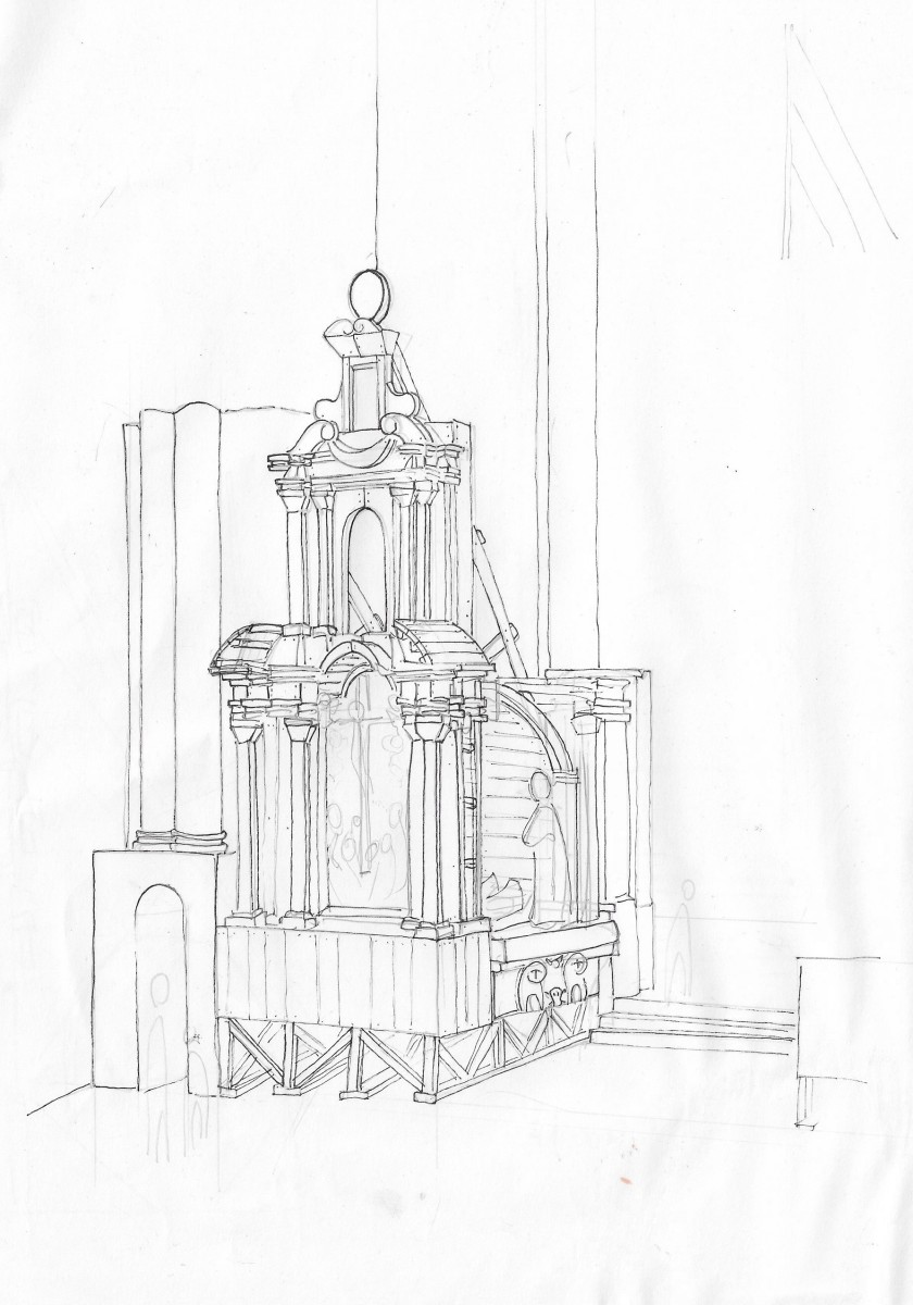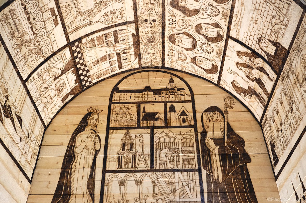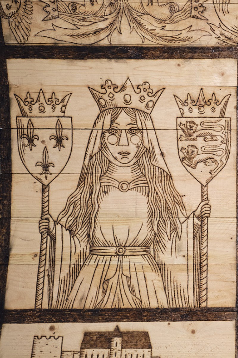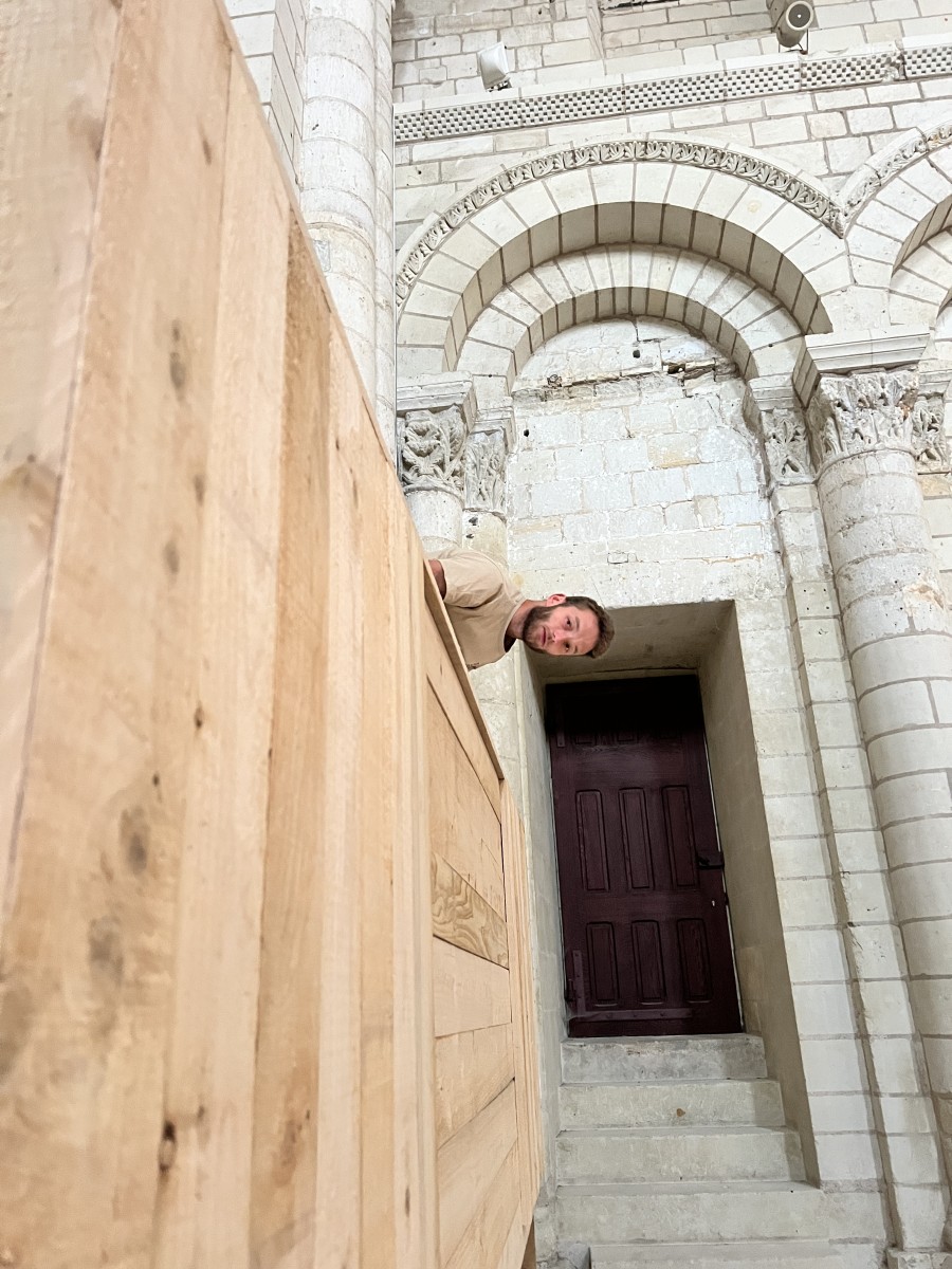 A l’occasion des 900 ans d’Aliénor d’Aquitaine, l’Abbaye Royale de Fontevraud organise l’exposition «Le Cimetière des Rois» et profite de l’occasion pour réinvestir la nef de l’église abbatiale et offrir aux visiteurs une tentative de restitution du Tombeau des Rois tel qu’il était au 17e siècle. Aujourd’hui subsistent de ce monument 2 retables ainsi que 2 hauts reliefs situés dans les chapelles voisines. L’objectif était donc de recréer ces deux retables dans leurs dimensions d'origine et d’y ré-installer les deux hauts reliefs originaux mais également d’apporter une médiation complémentaire et une expérience de visite unique à travers la la réalisation d'un récit graphique entièrement pyrogravé retraçant l'histoire d’Aliénor d’Aquitaine. La construction a nécessité 4 tonnes de cyprès de Bretagne qui ont été levée à la main dans l'église.
