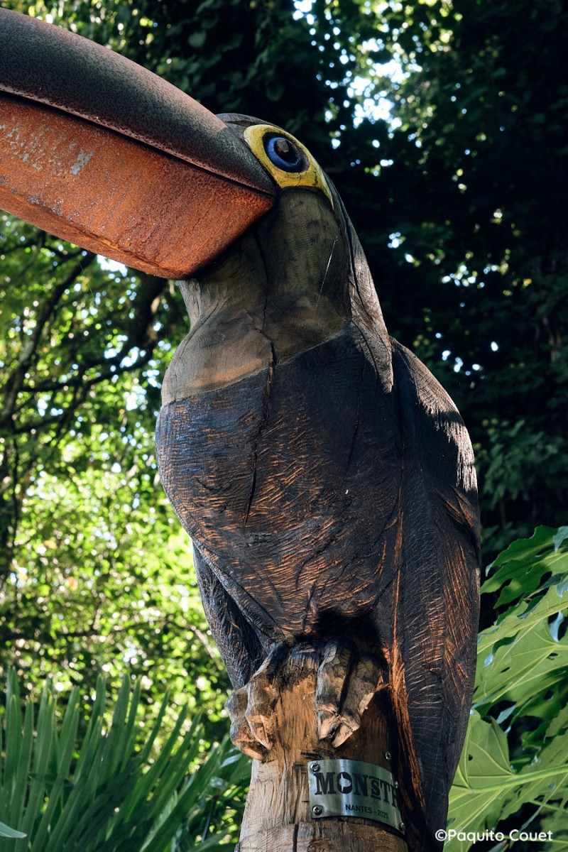 Le service des espaces vert de Nantes, Nature et Jardins, nous commande régulièrement des sculptures pour orner les parcs et jardins de la ville. Elles sont toutes réalisées à partir de bois nantais issu des coupes urbaines, à partir de grumes emmenées à notre atelier ou directement sur des arbres tombés pendant les tempêtes et laissés sur site. Ainsi en 2025, nous accueillons dans notre bestiaire :