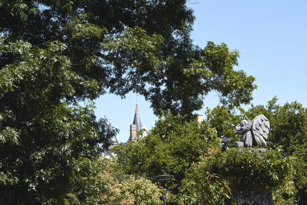- Un petit dragon sculpté directement sur une souche laissée en place, clin d’œil à l’aire de jeu de Kinya Maruyama square Mercœur dans le quartier du Bouffay.