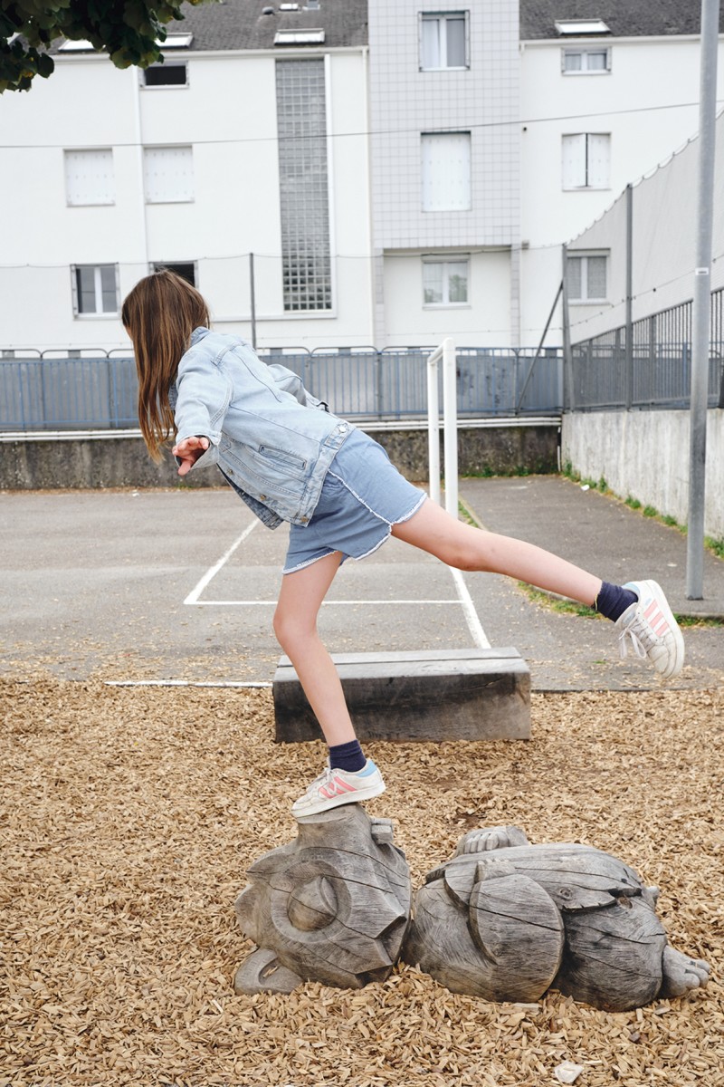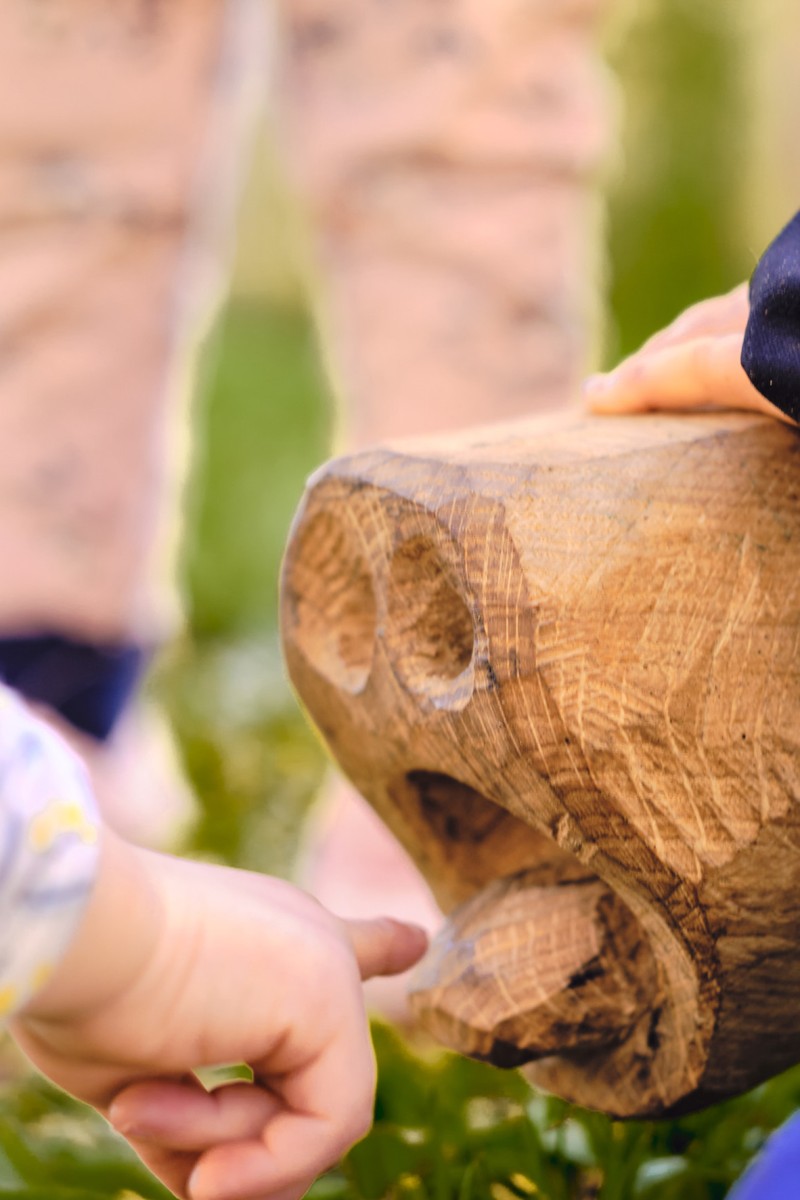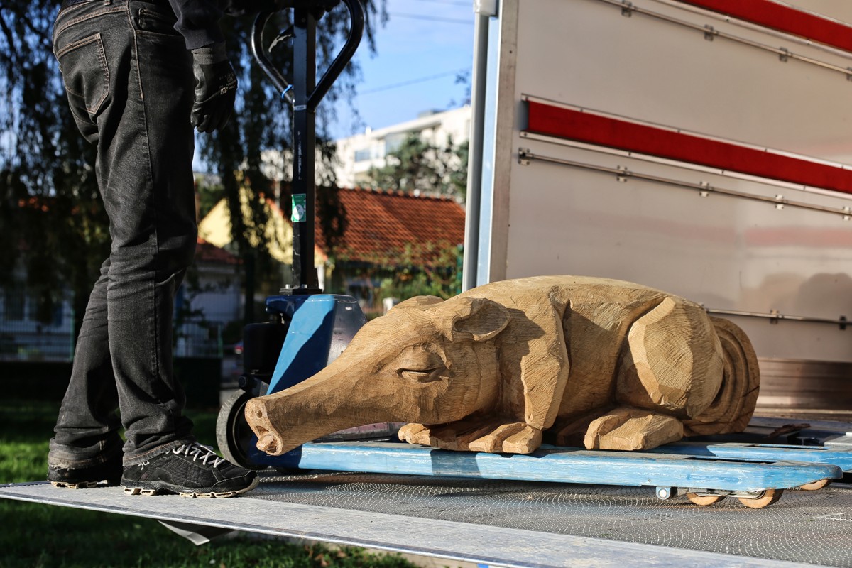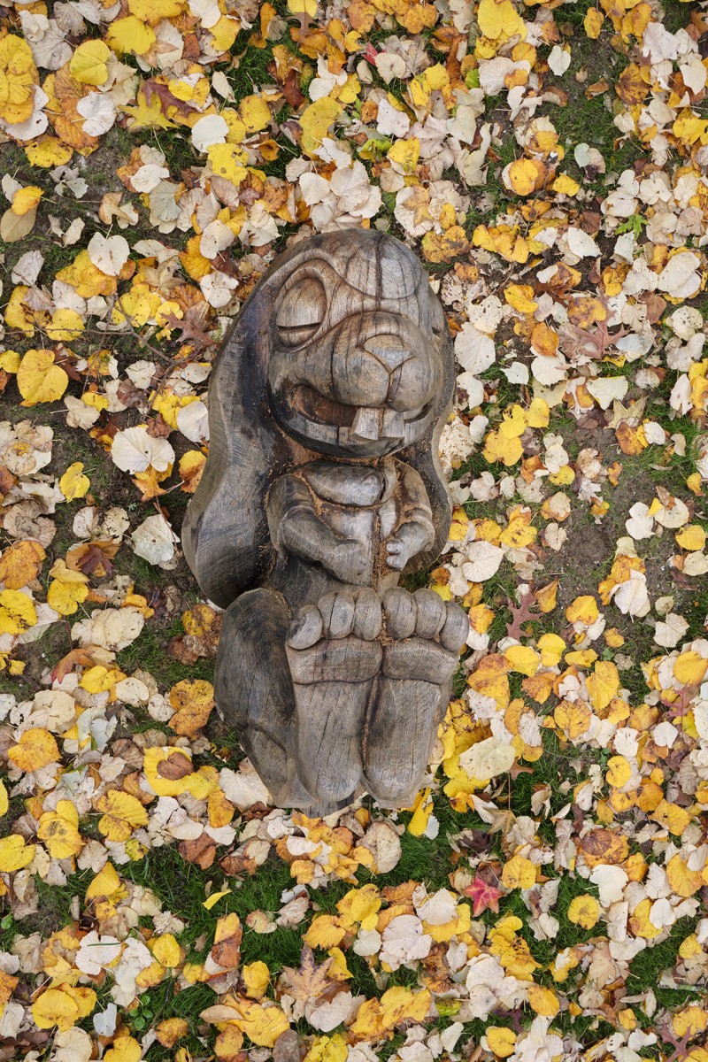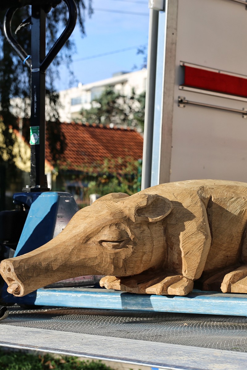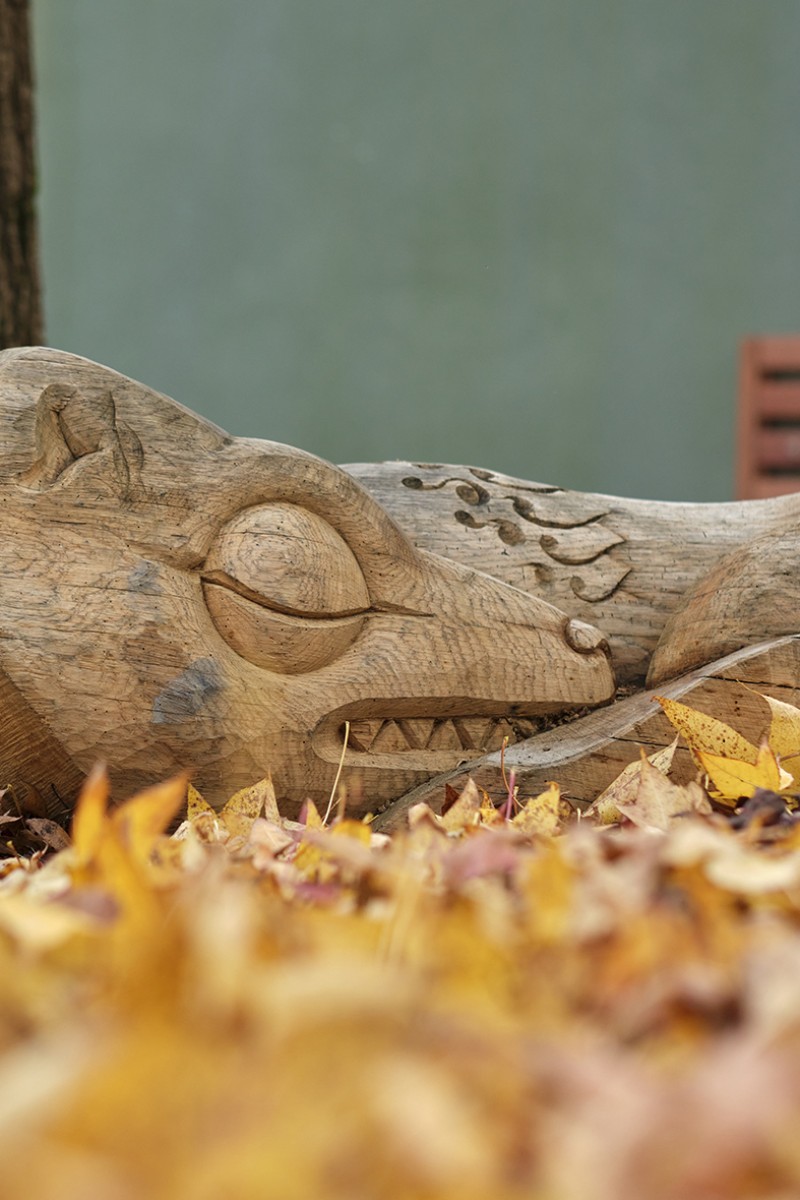 En 2022 l’école François Dallet a été notre premier terrain d’expérimentation, dans le cadre de la re-végétalisation de sa cour. À partir des troncs couchés, nous avons sculpté des animaux endormis choisis par les enfants, renard, castor, cochon, lapin, souris. Leur posture allongée prolonge naturellement la forme d’un tronc et instaure une présence massive et douce, à hauteur d’enfant. Supports de récits et de jeux, les élèves se les sont rapidement appropriés.