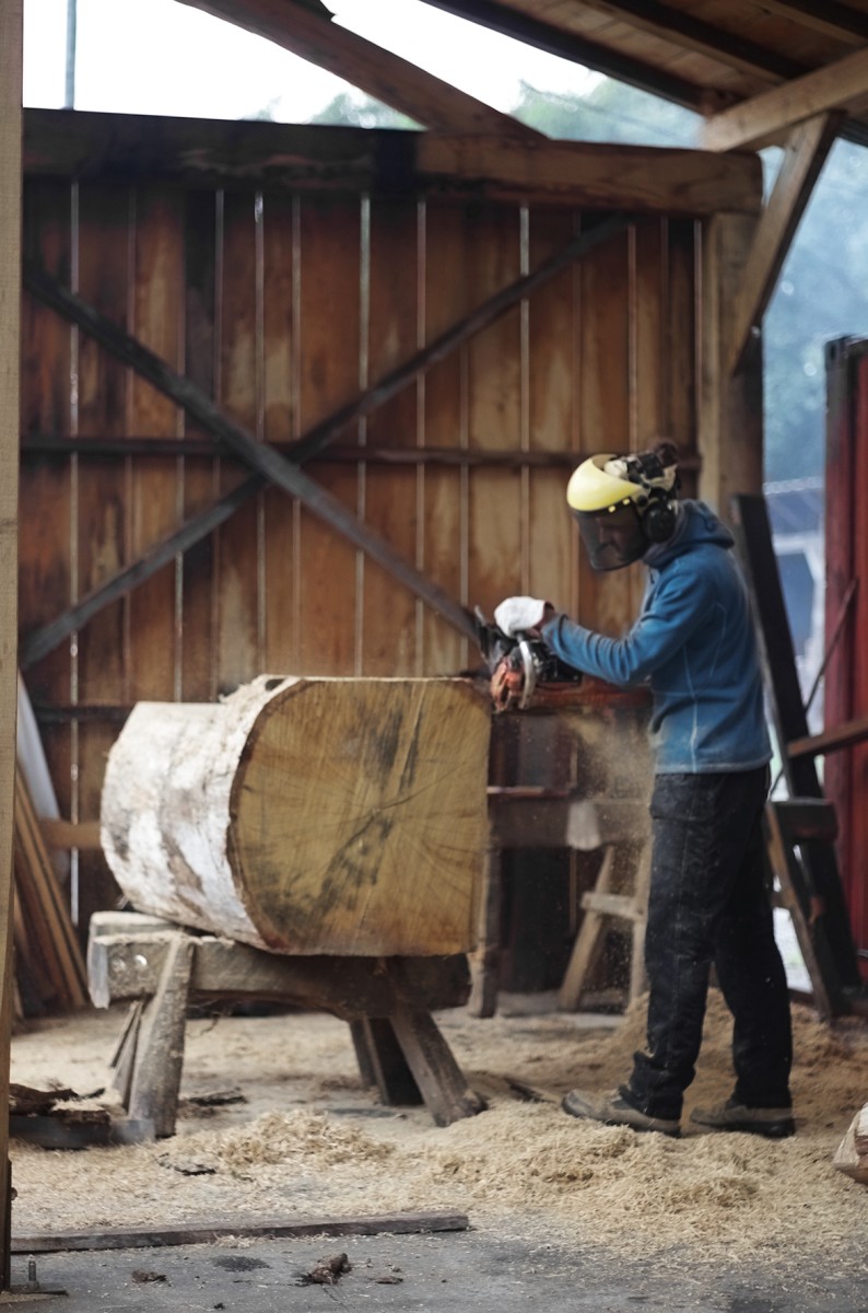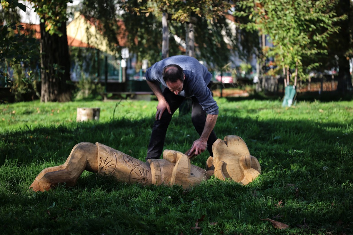 Issu de la filière bois d’œuvre du service Nature & Jardins de la ville de Nantes, le bois issus de coupes urbaines constitue le point de départ du projet Endormis. Chaque sculpture naît d’une grume nantaise, dans une logique de circuit court et de continuité écologique.