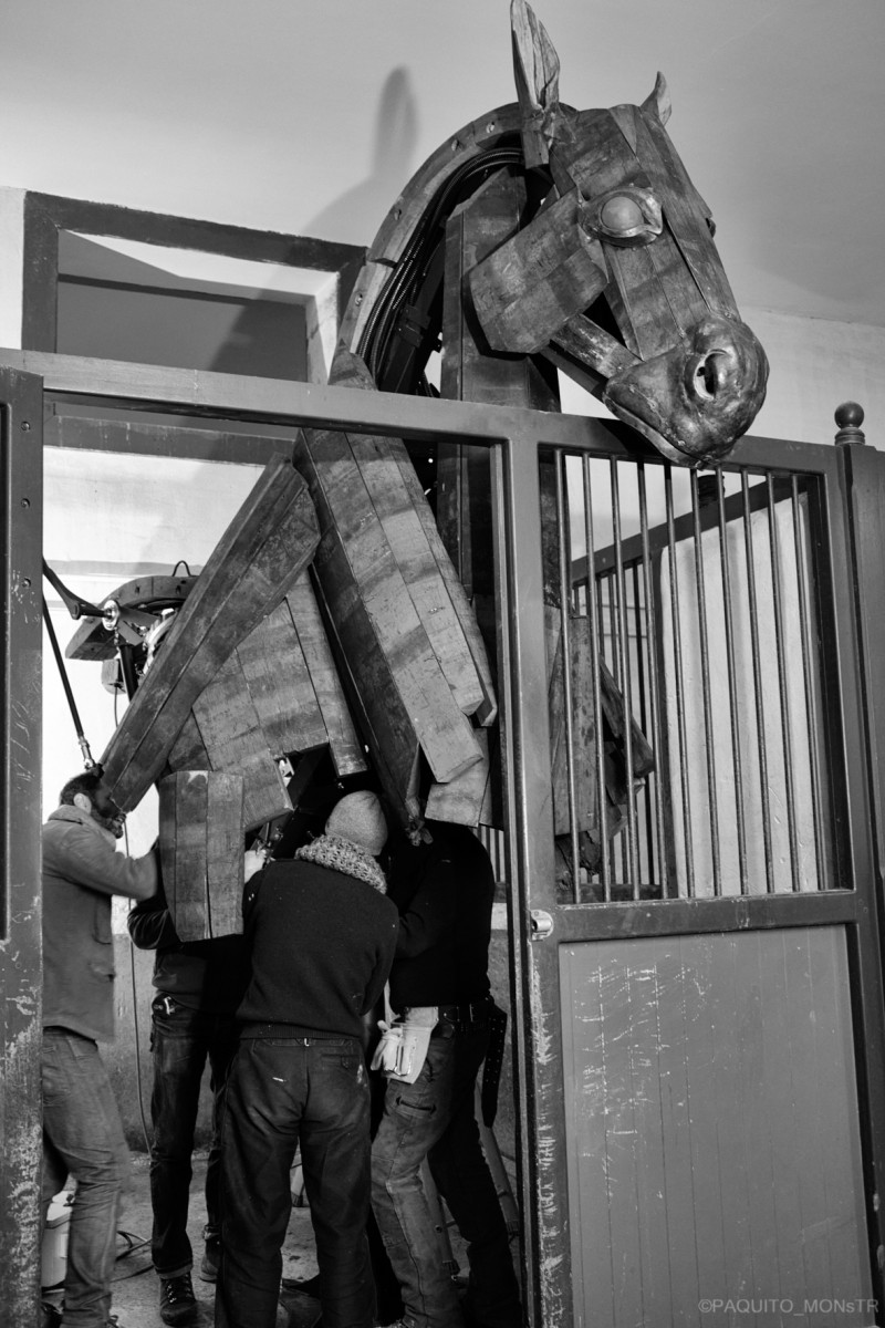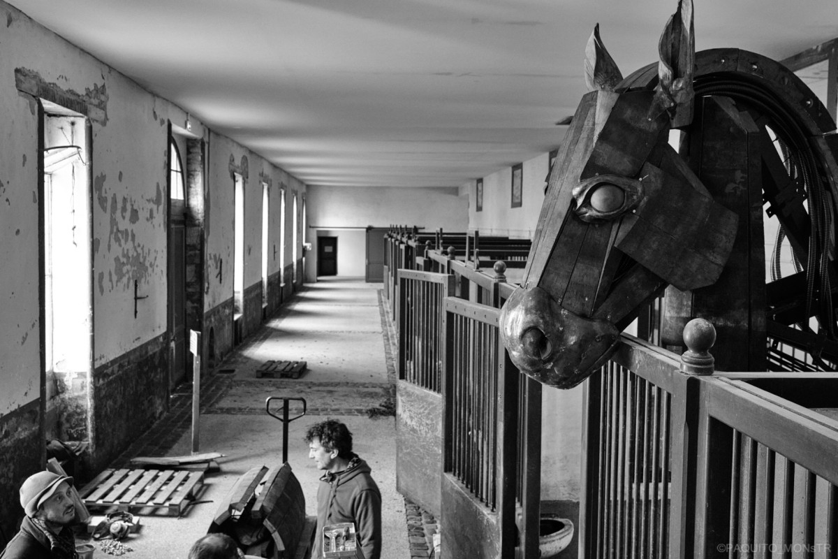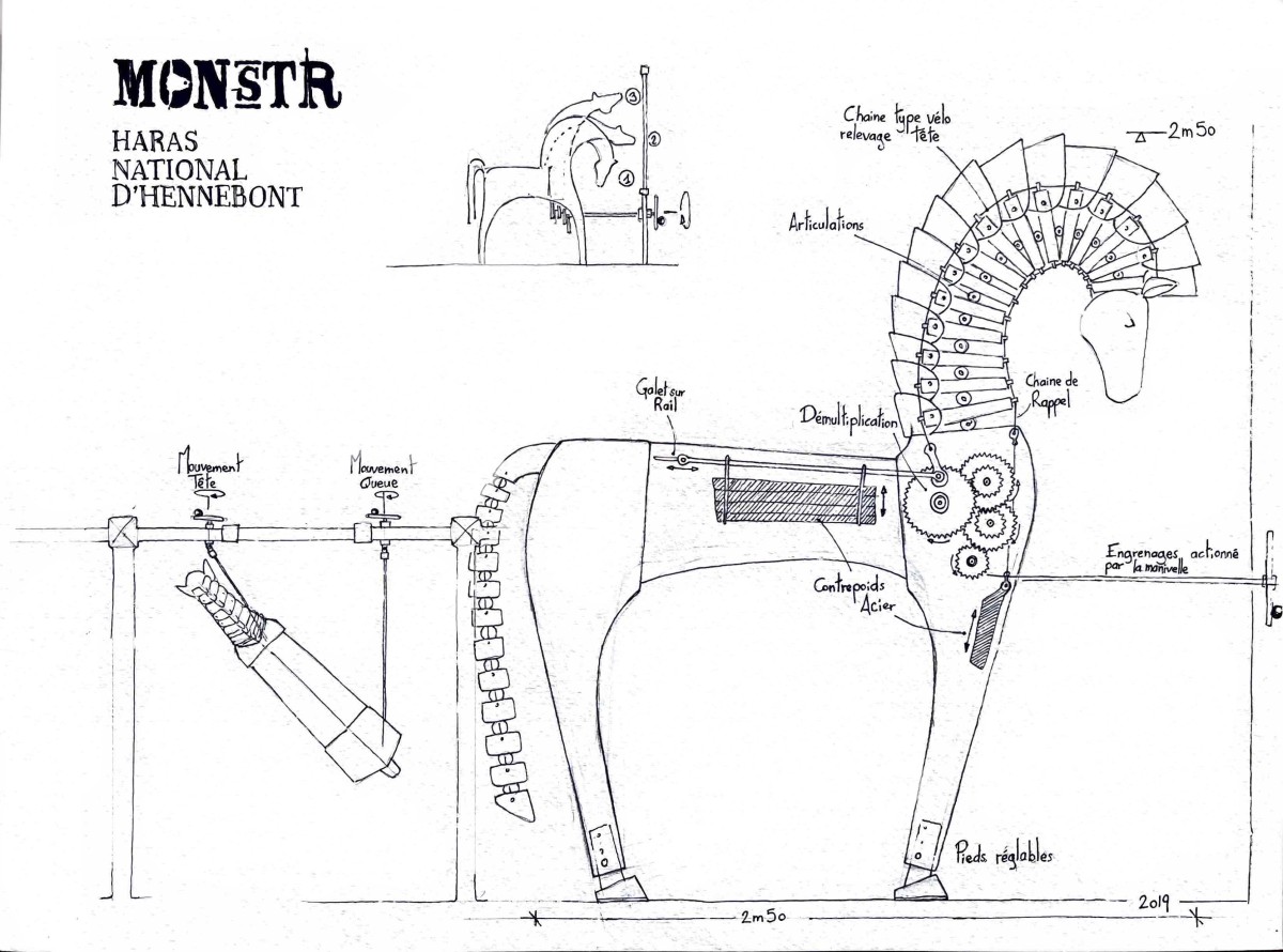 Après avoir été un lieu à vocation essentiellement militaire, le Haras National d’Hennebont s’est transformé en scène équestre régionale. Dans cette dynamique, le Haras a restructuré son projet avec l’ambition d’enrichir le parcours de visite et d’offrir une expérience sensible et poétique aux visiteurs. Pour concrétiser cette ambition, nous avons créé Foudre et Wakouwa, deux chevaux mécaniques en bois, uniques comme les autres pensionnaires de l’écurie.