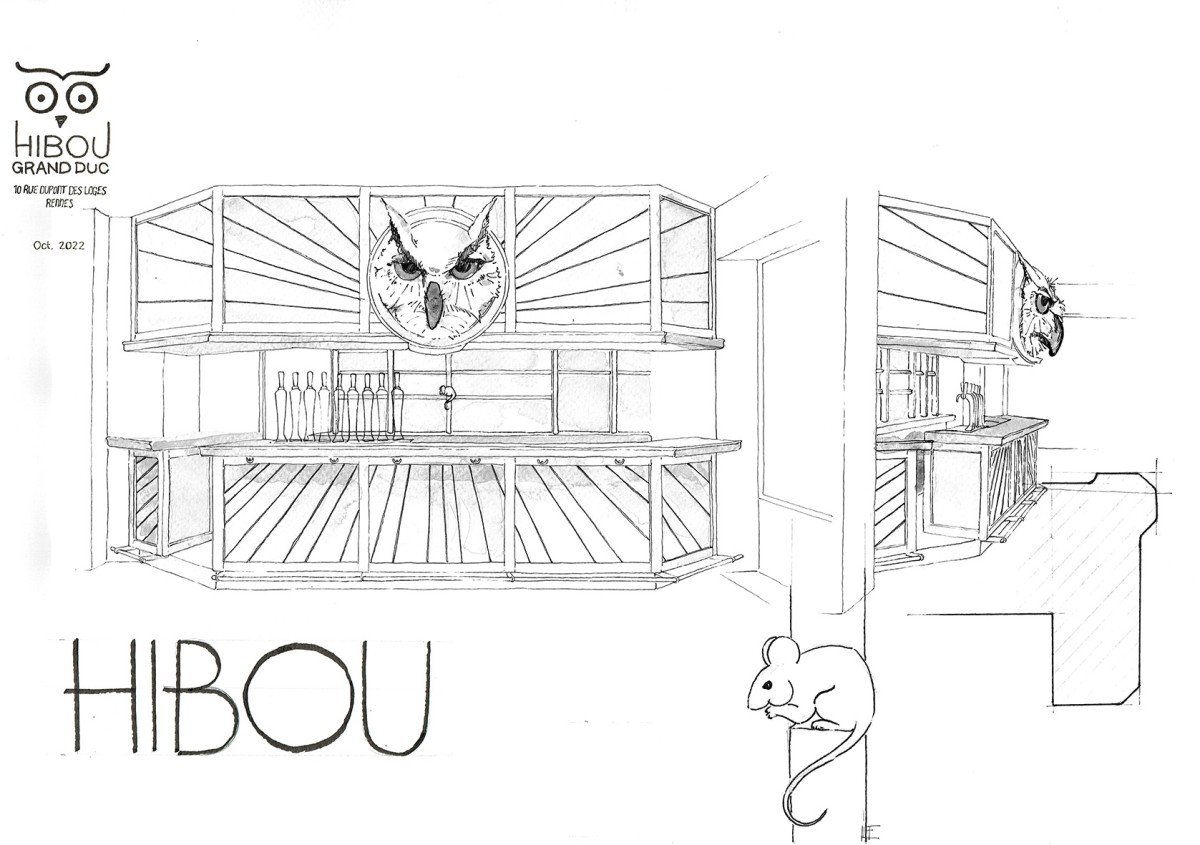 Dans un bâtiment marqué par la présence d’œuvres du mosaïste rennais Isidore Odorico, MONSTR conçoit un comptoir sculptural sur-mesure dans le cadre de la rénovation du bar Le Hibou, pensé comme une pièce maîtresse structurante.
