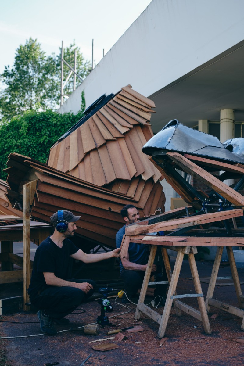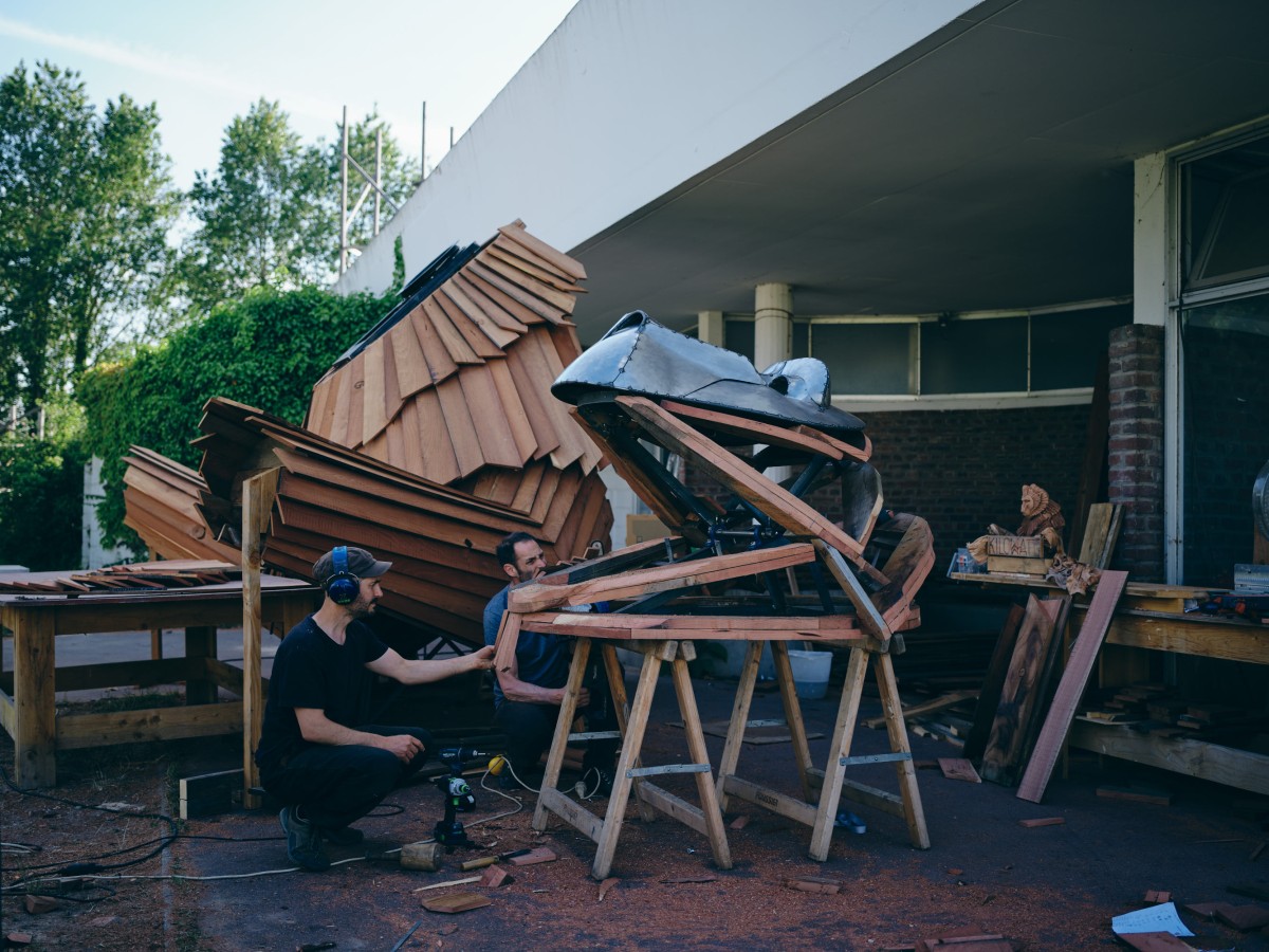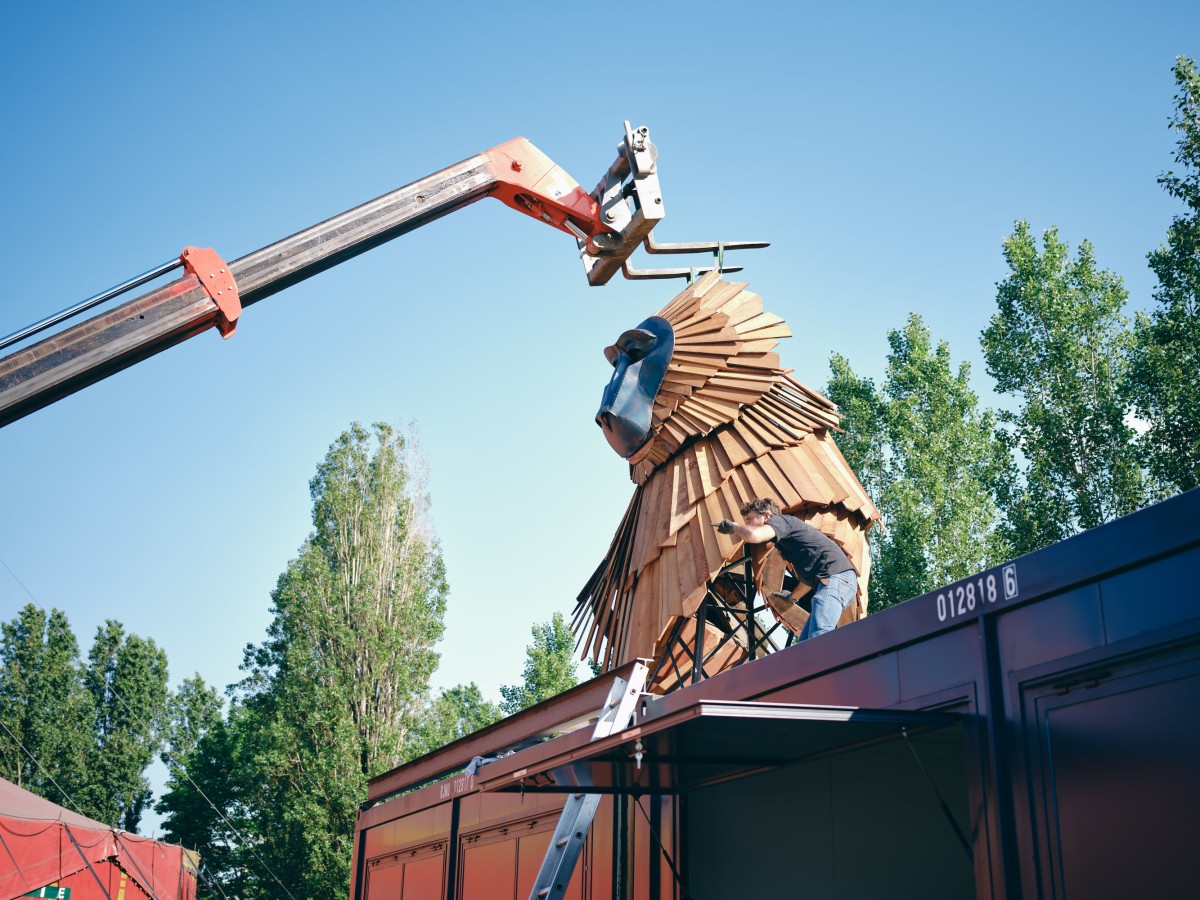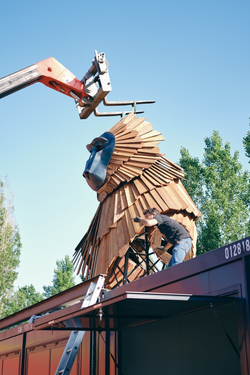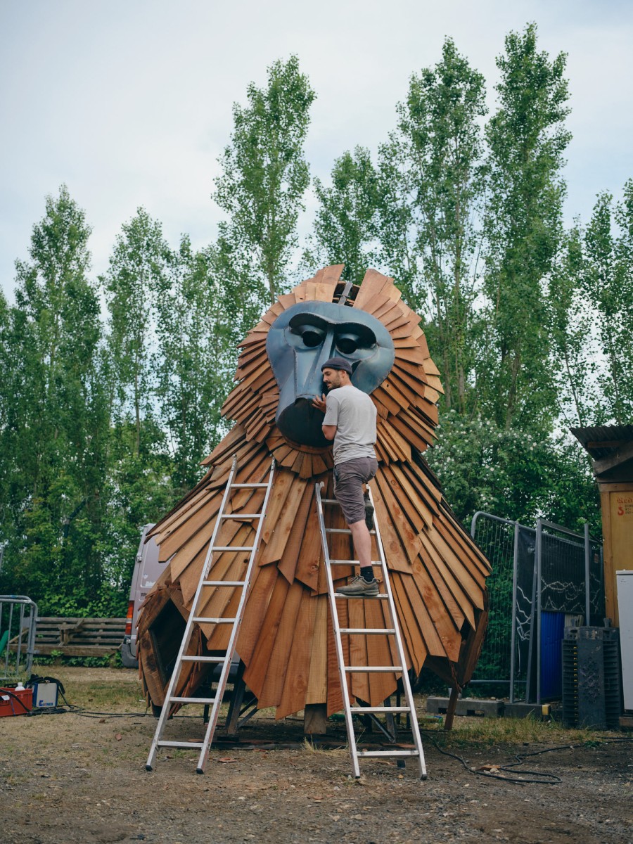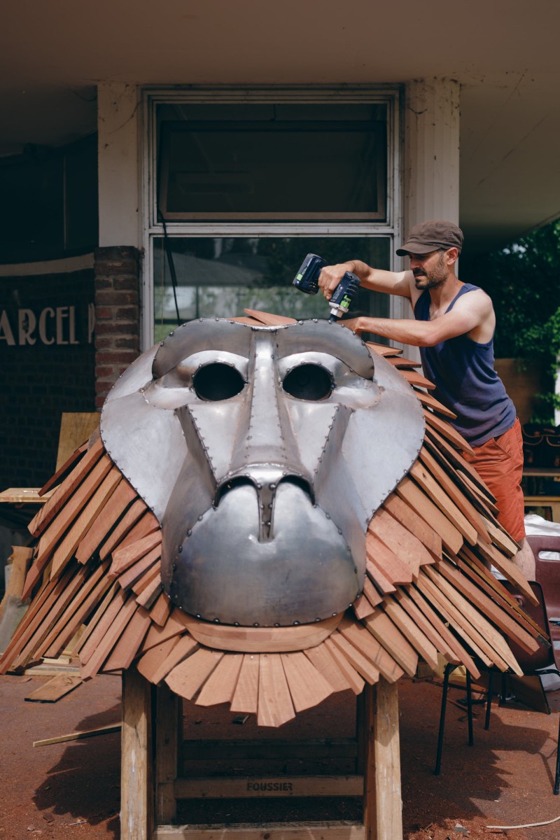 King K. est une commande du Kilowatt, lieu artistique et culturel à Vitry-Sur-Seine. A l’occasion de la treizième édition de son Festival Sur Les Pointes, l’équipe souhaitait inaugurer une nouvelle sculpture pérenne sur son site. Après la réalisation du Chacal en 2020, elle souhaitait compléter le bestiaire avec une nouvelle mascotte, très identifiable du public.