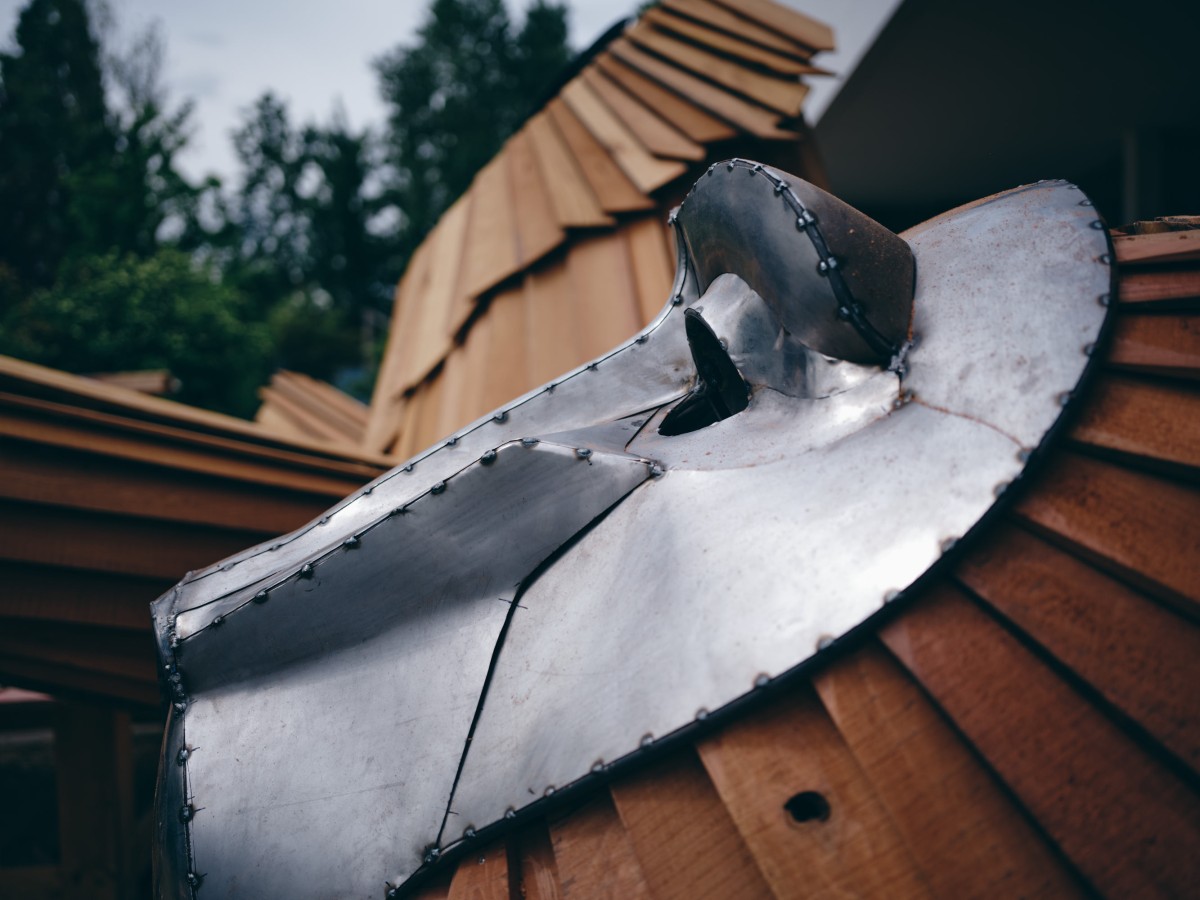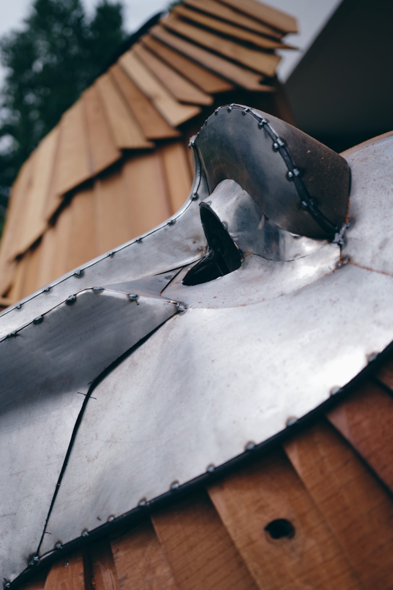 - MatériauxBois bardeau de Séquoia, profilés acier brut et tôle d’acier