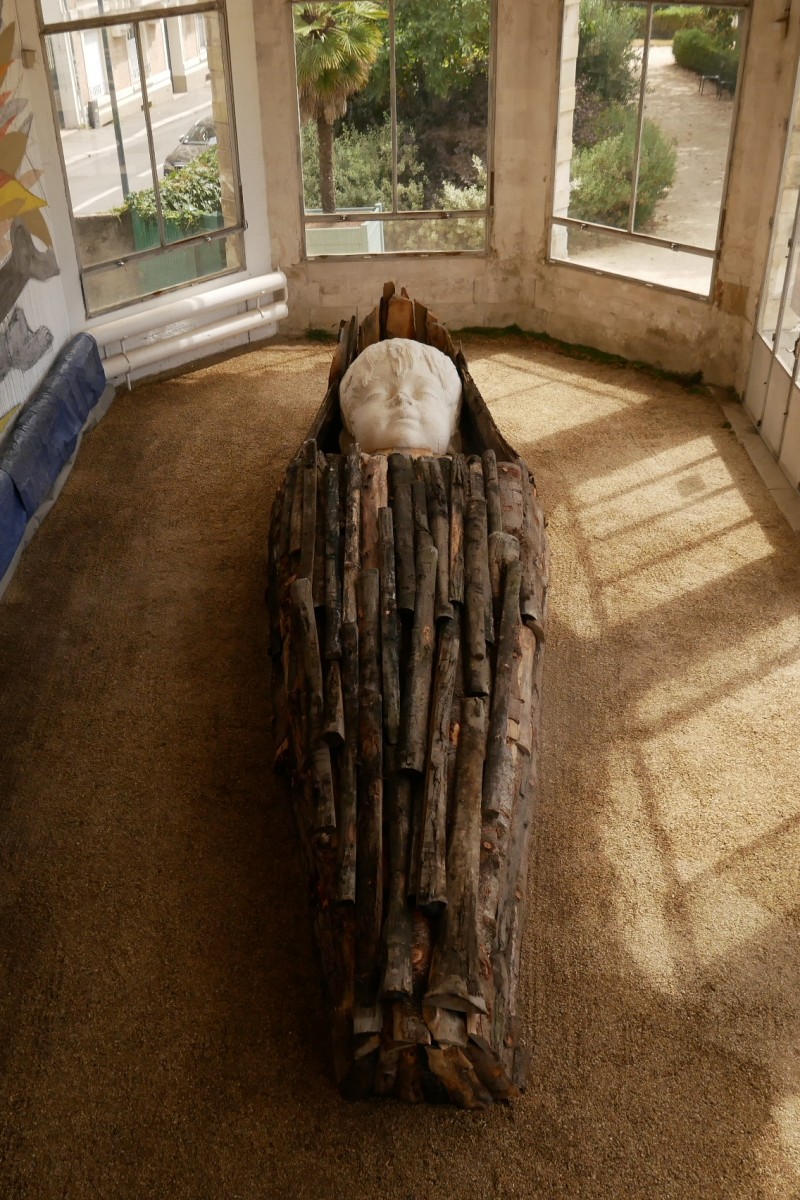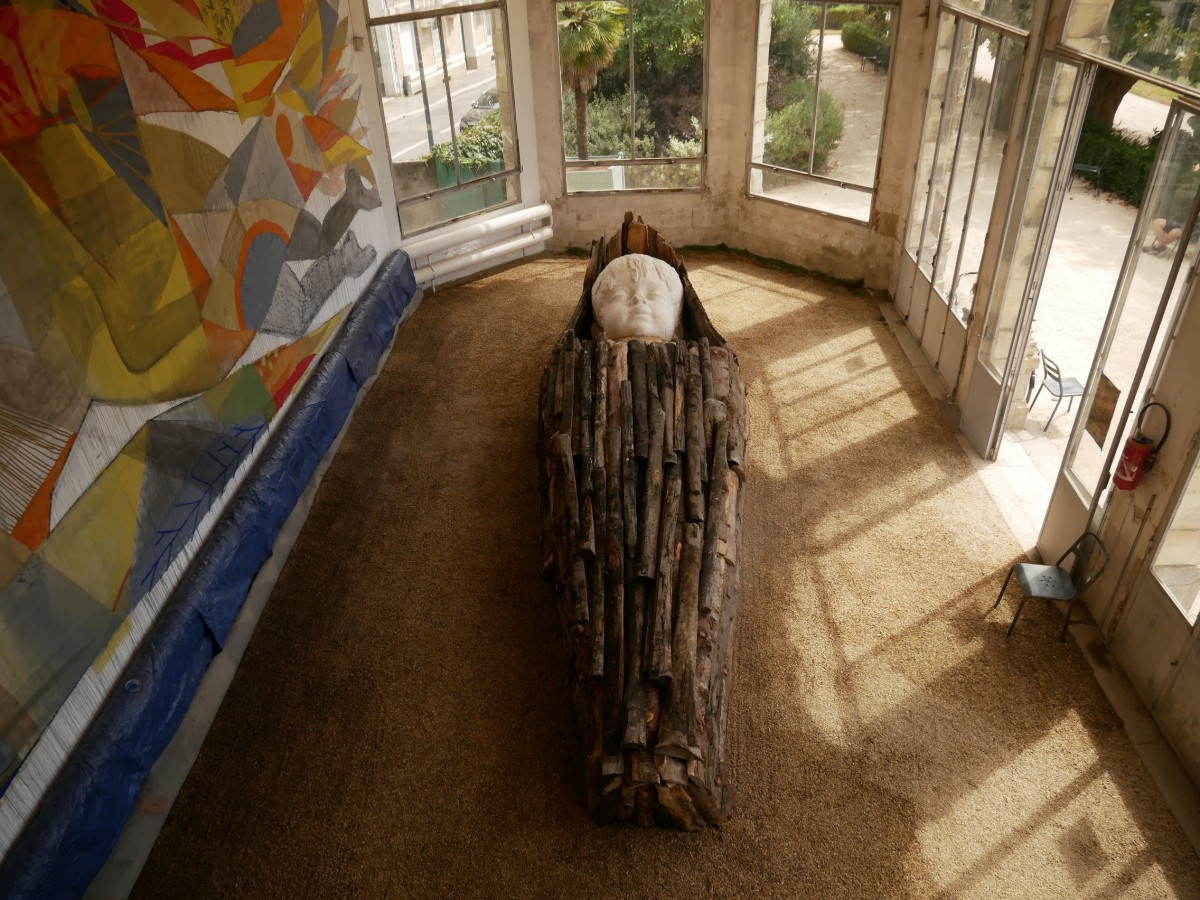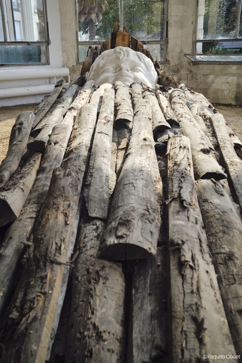 Conçue en réaction aux incendies de l’été 2022, l’installation met en scène une figure d’enfant, volontairement ambivalente. Selon les regards, elle évoque un gisant, une embarcation funéraire ou un récit mythologique. Aucune interprétation n’est imposée. Le projet assume cette pluralité de lectures et laisse au public la liberté de construire sa propre narration.