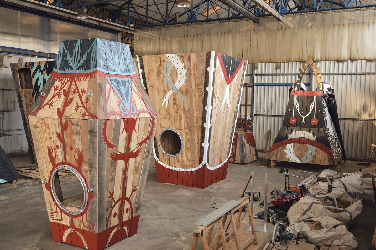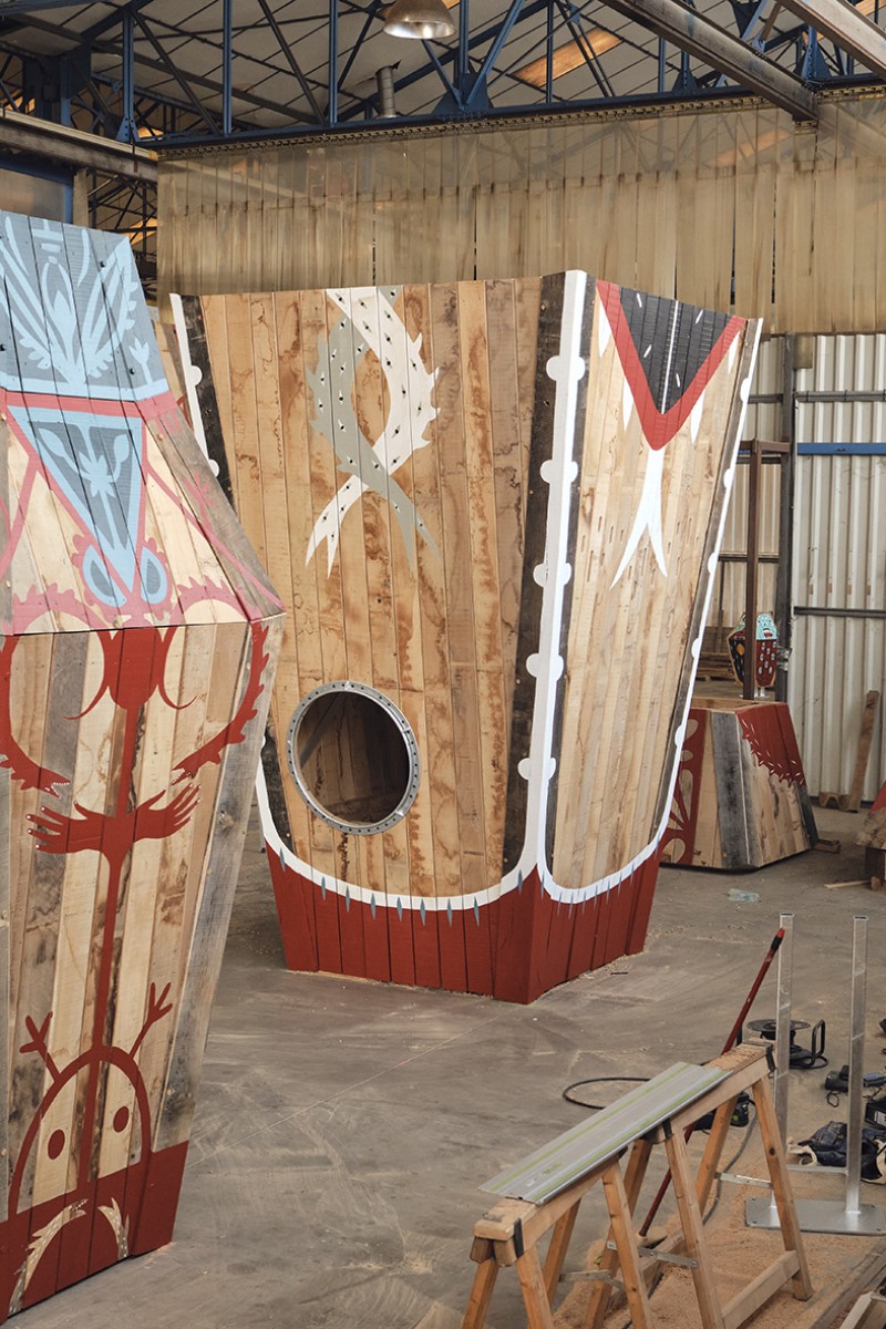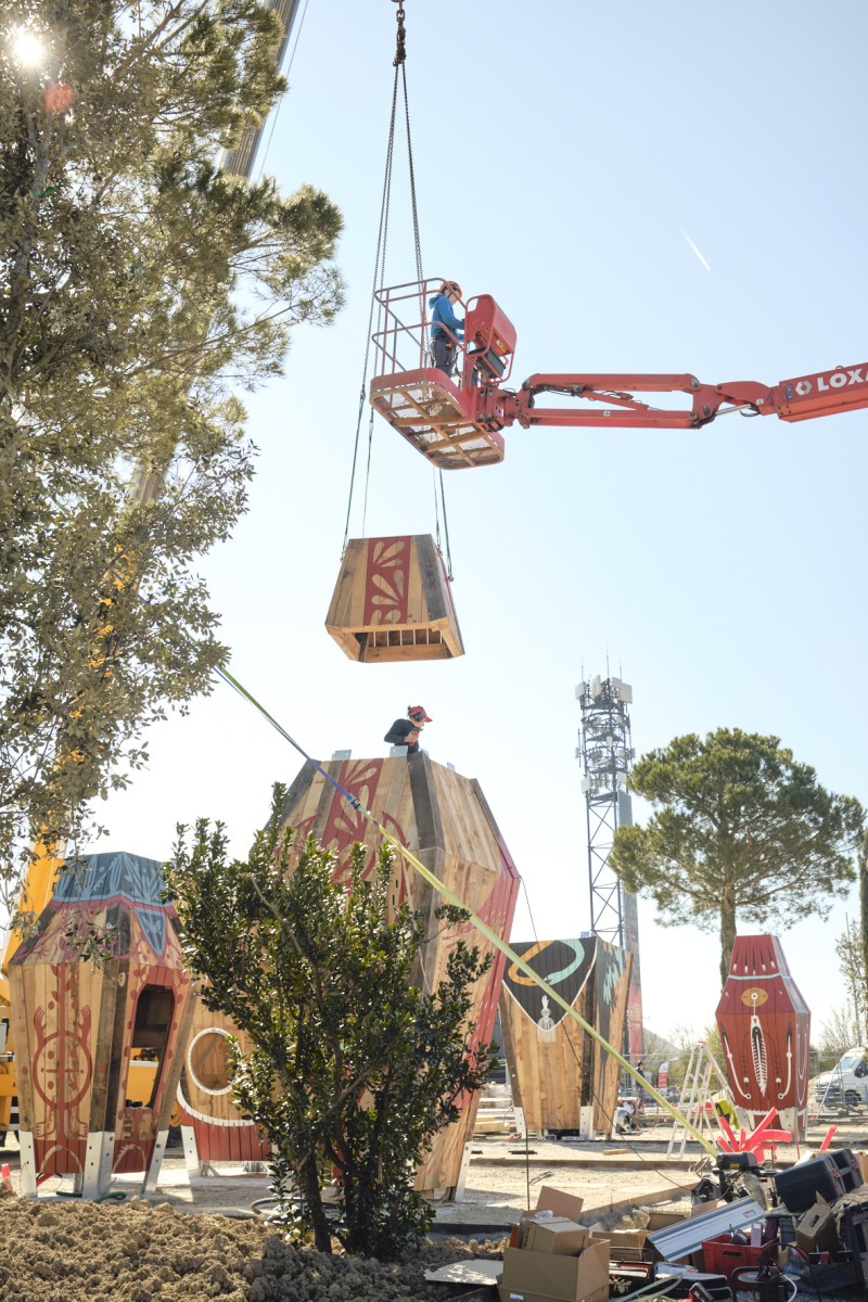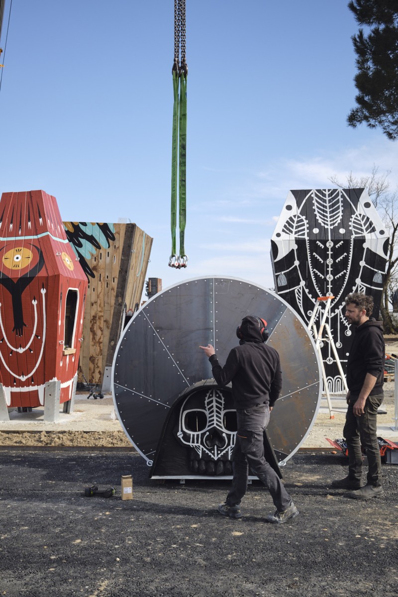 Dans cet environnement riche et puissant, MONSTR propose une œuvre ludique et colorée, pensée en lien avec cette filiation mythologique du Hellfest tout en restant joyeuse. En installant des œuvres d’art praticables qui prennent sens par leurs interactions avec les utilisateurs, il s’agit ici de s’émanciper des conventions esthétiques traditionnelles, pour favoriser la dimension ludique, l’imaginaire et l’expérimentation.