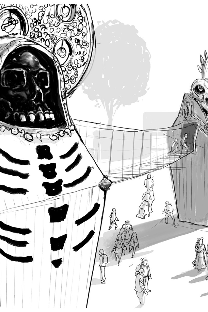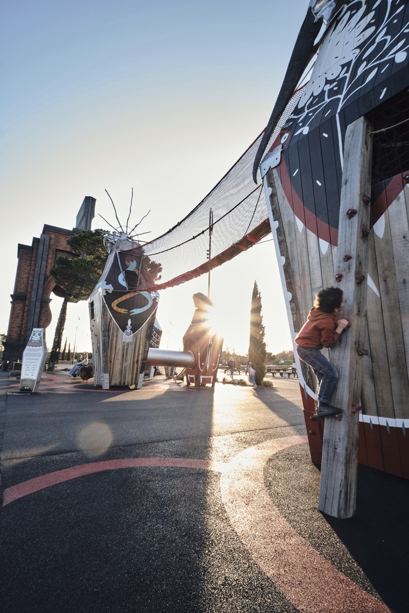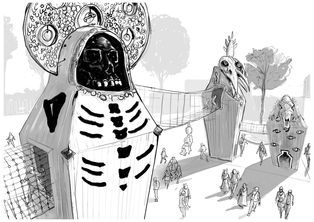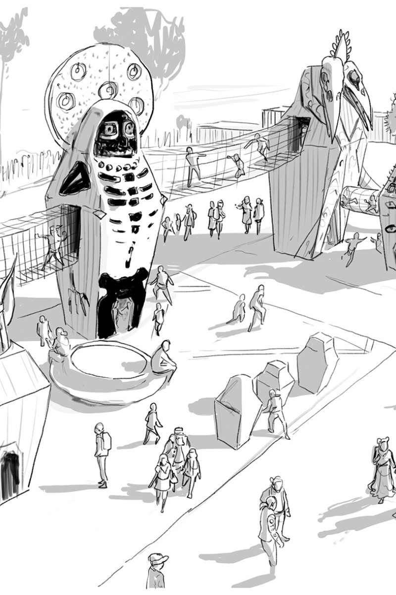 Dans le cadre de son développement touristique et culturel, le site du Hellfest ouvert à l’année, souhaitait une aire de jeu pérenne à destination d’un public familial. En s’inscrivant dans l’imaginaire originel du Métal, le festival mobilise les thématiques fondatrices de la Mort et de l’Enfer, dans une dynamique de mythes et légendes ancestrales.