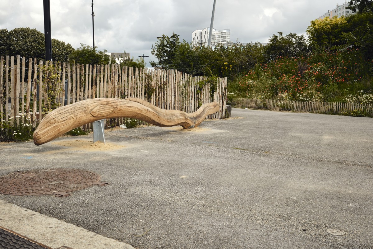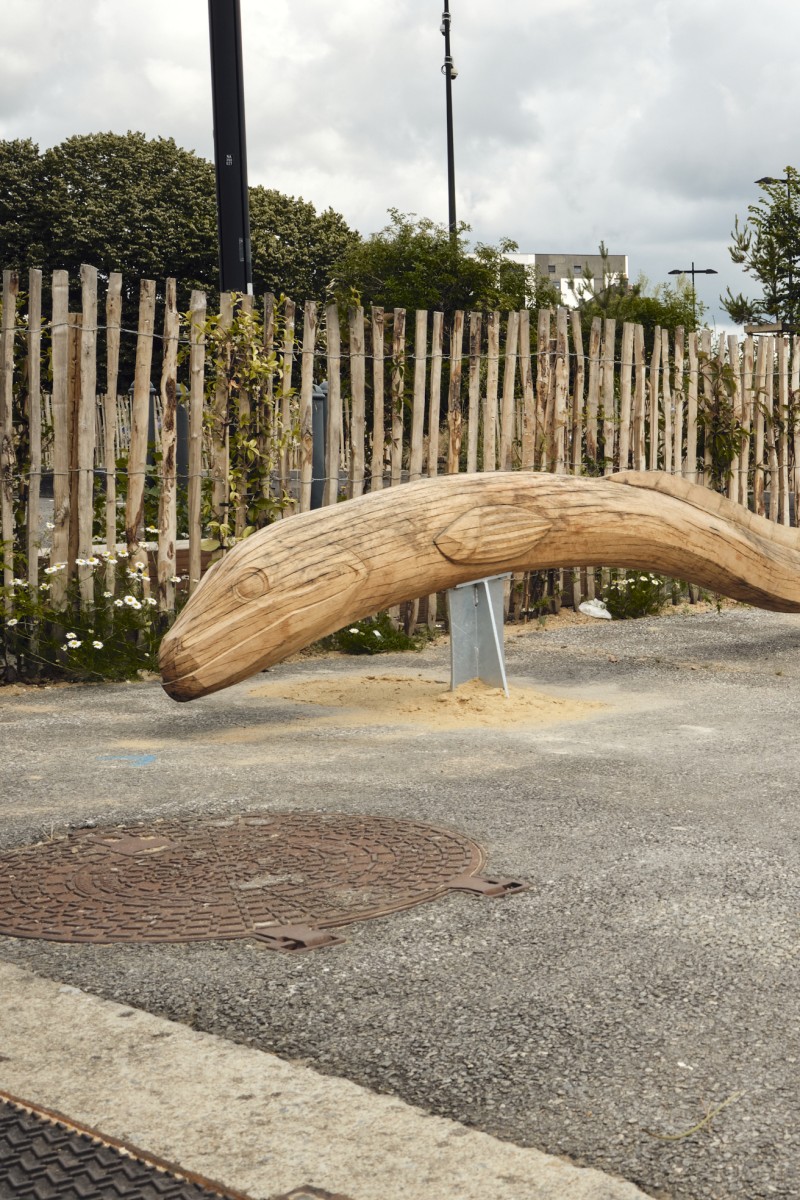 Sur la promenade verte reliant l’Erdre à la Loire, MONsTR a été invité par la direction Nature et Jardins de la Ville de Nantes à concevoir une série de sculptures destinées à accompagner l’aménagement du Quai des Pins, sur les berges du canal Saint-Félix.